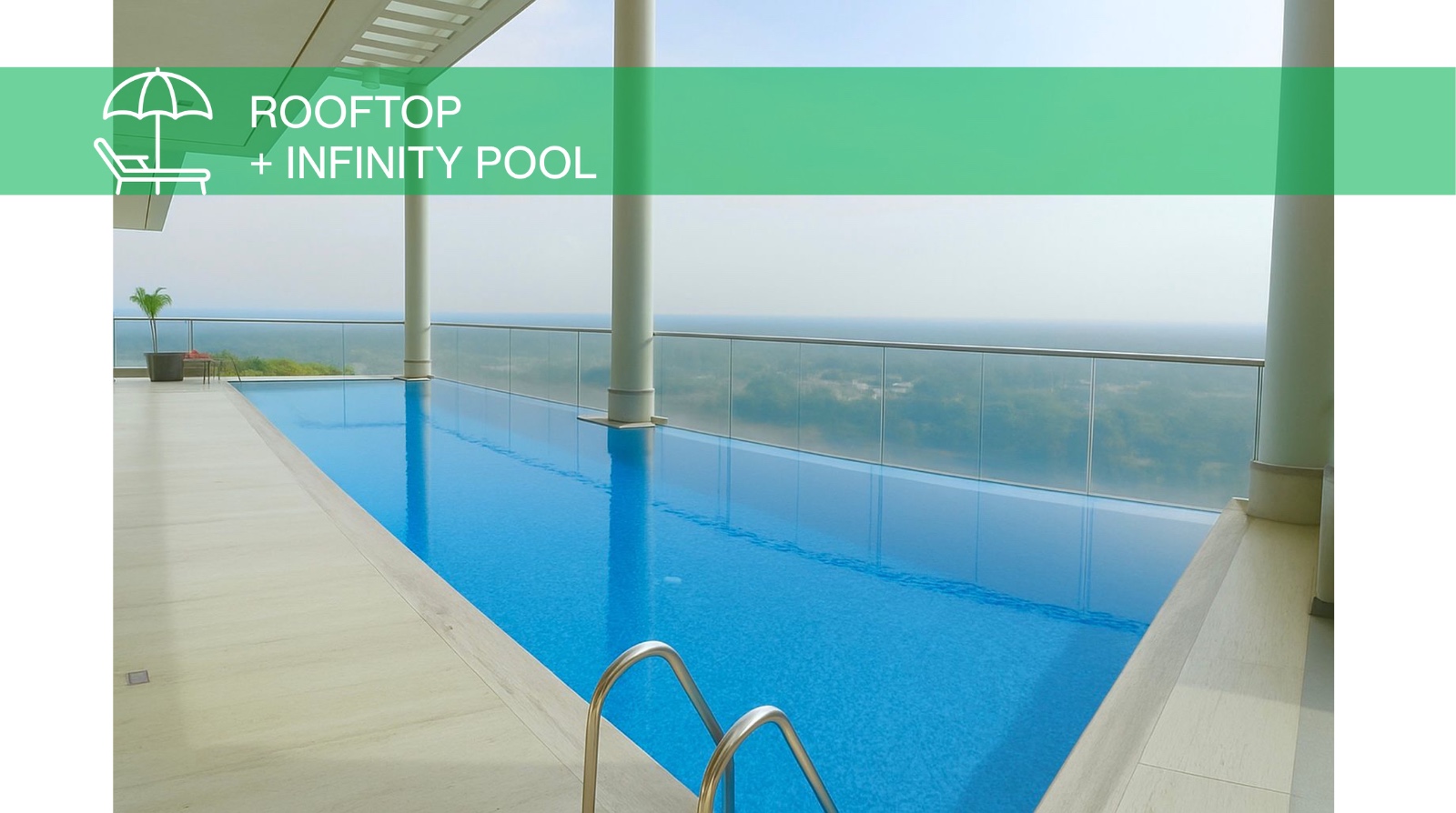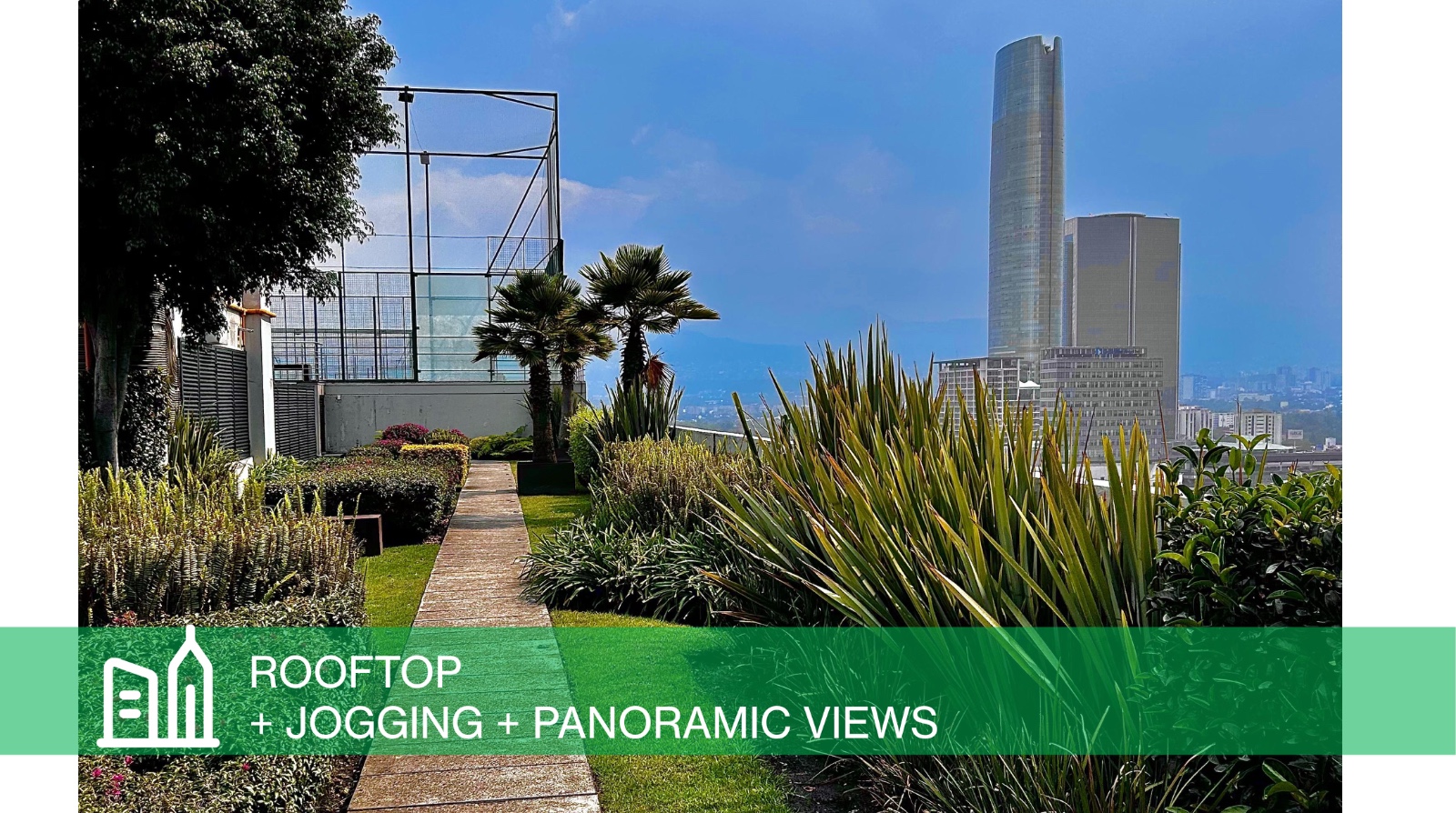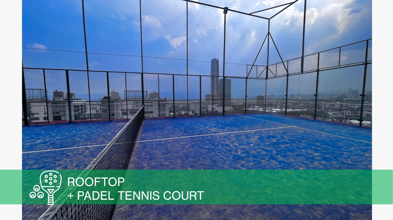 Full gym, yoga studio, rooftop cardio on floor 21, spa, panoramic pool, indoor & outdoor cinema, bowling alley, padel court, coworking space, and an in-building mini market.