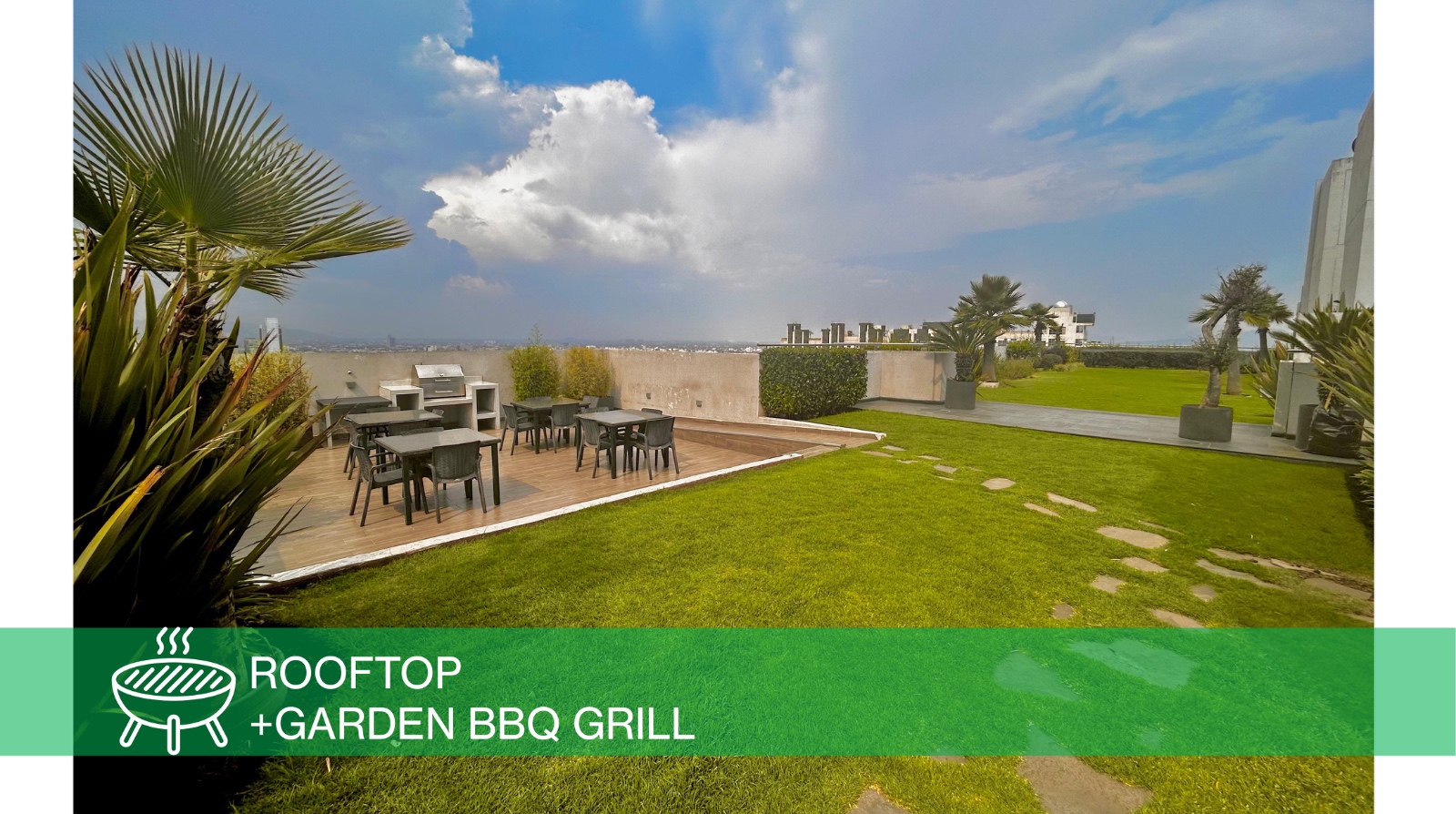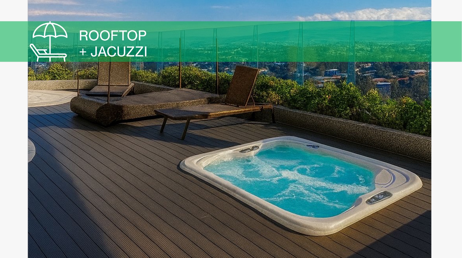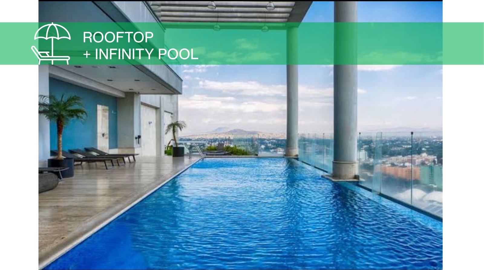 Full gym, yoga studio, rooftop cardio on floor 21, spa, panoramic pool, indoor & outdoor cinema, bowling alley, padel court, coworking space, and an in-building mini market.