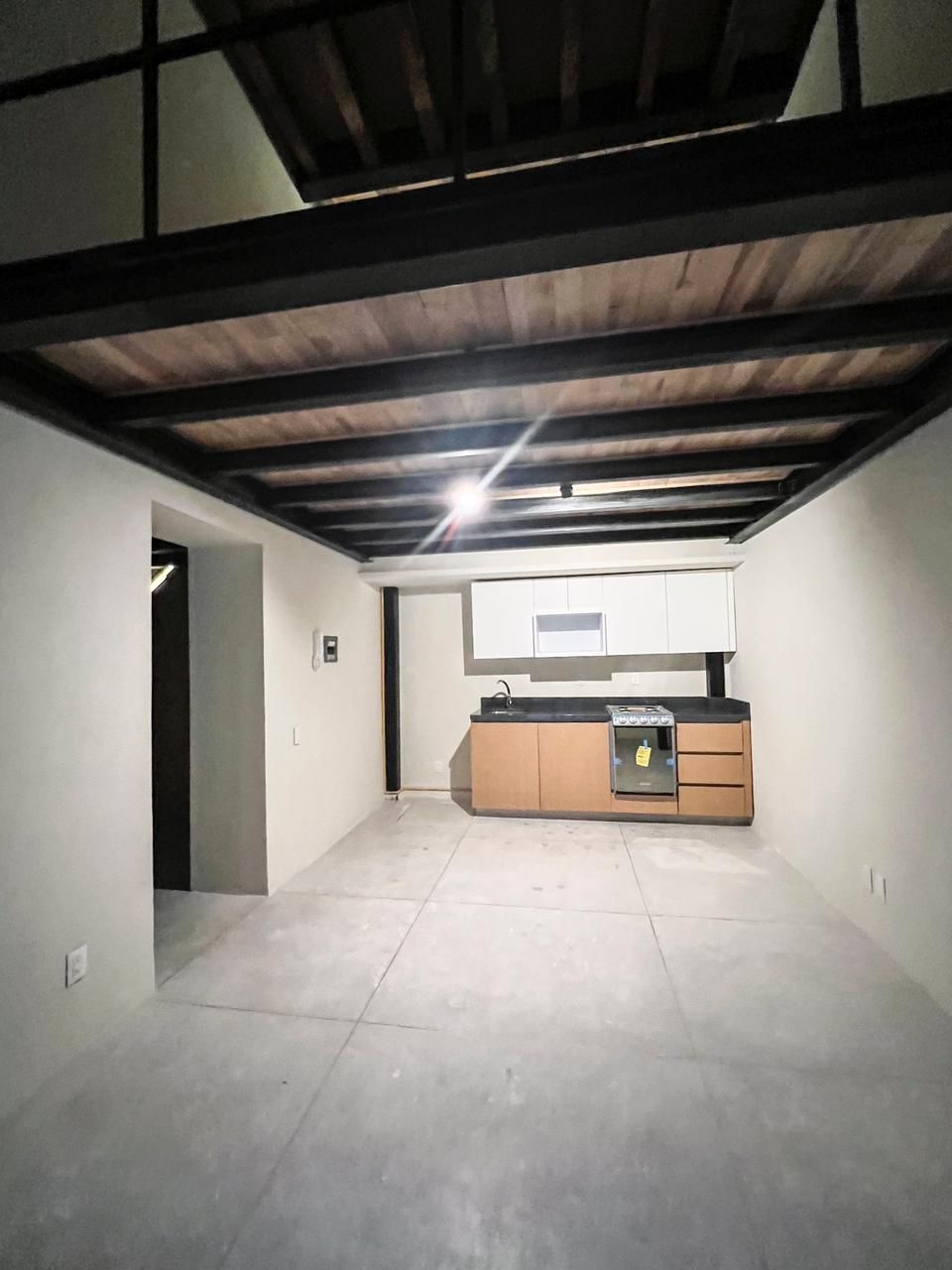 A two-story apartment inside a restored Porfirian mansion on Emilio Dondé Street, Historic Center — two blocks from Paseo de la Reforma and facing La Ciudadela. Ground floor interior unit: completely silent. Original wood-beam ceilings, equipped kitchen, 1 full bath and 1 half bath, service room and private patio. The building features a historic central courtyard and a rooftop terrace available for an extra fee. 24/7 security.